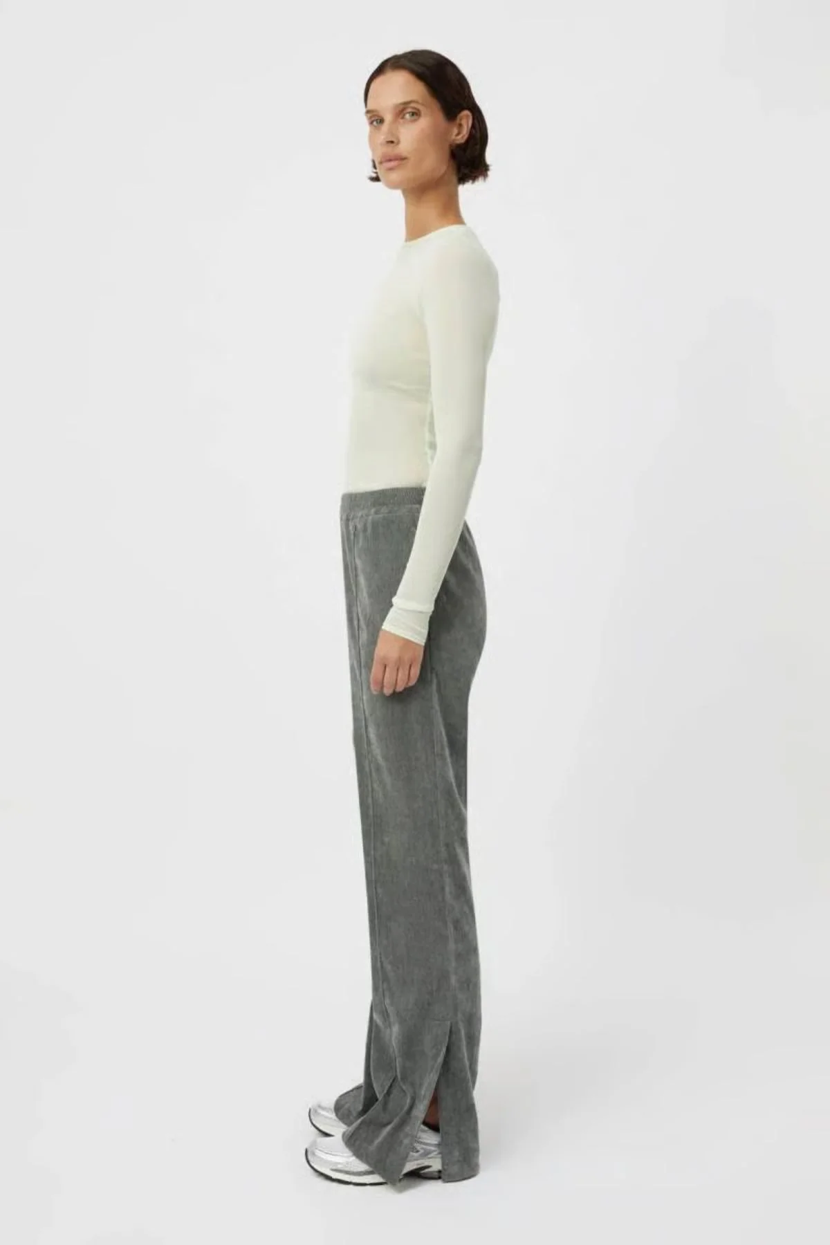 Introducing the Camilla and Marc Aneta Velour Track Pant in Agave, a chic and modern leisure staple. These track pants feature elegant pintucks along the front of the legs, adding a sophisticated touch to the design. With side seam splits at the leg hem, they offer both style and functionality, allowing for ease of movement and added breathability.