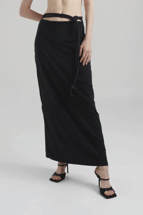 From sea to soirée with Maygel Coronel's Sinara maxi skirt. The shimmering knot at the waist lets you play and adjust to your shape. Practical as a beach cover-up, and perfect for effortless looks at night.