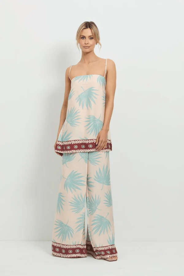 Introducing the Pasduchas Summer Fling Pant in Multi. Crafted from soft-touch Tencel, these skort-style pants feature an exclusive palm print with contrasting border details. Sitting high at the waist, the pants are secured at the centre back with an invisible zipper, offering a tailored yet relaxed fit. Pair them with the Summer Fling Tunic for a coordinated resort-ready look.