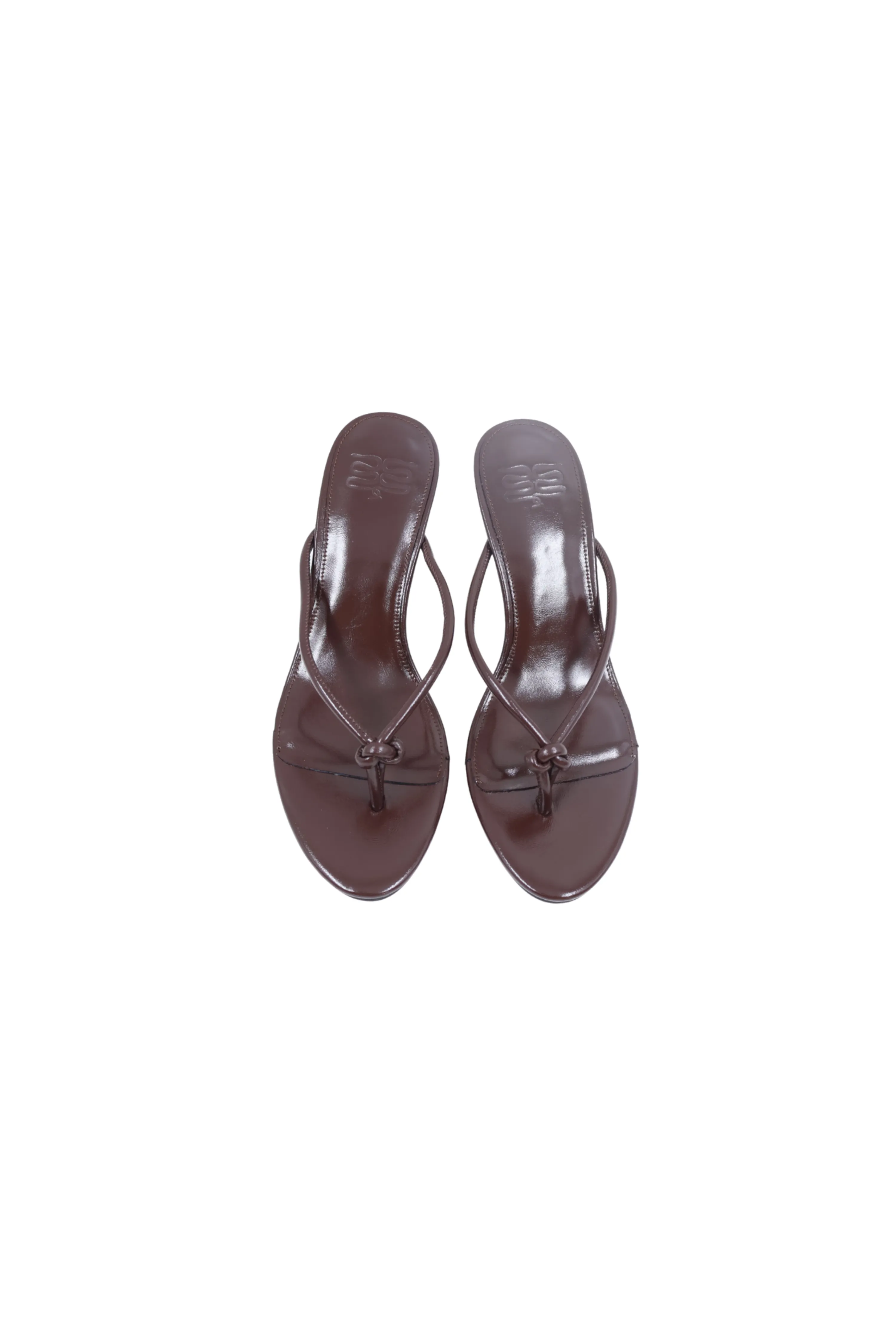 - Features: Knotted thong strap, open toe, low sculpted heel, slip-on design